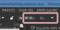では次に、繰り返しの設定を変えます。 繰り返しの設定とは、始点・終点の範囲外の領域をどう塗るかの設定です。 現状、始点側も終点側も範囲外の領域にはグラデーションはかかりませんが、これを変更します。