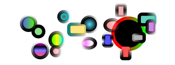 上図のように色の異なる楕円と矩形のシェイプを用意しました。 また、黒色の太めのストロークを持たせています