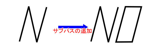 上図のように "N" の形状に戻します。 では、サブパスを追加しましょう。 引き続き、ペンツールを使います