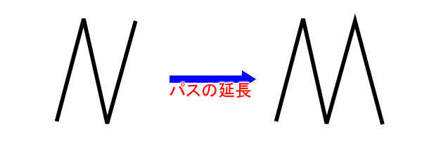上図のように今回は "N" の形状のパスを作成してみました。 では、このパスを延長してみます。 鉛筆ツールとペンツールのどちらでも延長できますが今回はペンツールを使ってみましょう