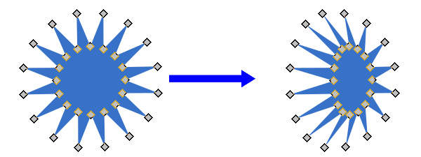 Inkscapeでは、ノードをスカルプト加工することができます。 粘土細工のように、押し込んだり引っ張り出す感覚で形作ることができます。