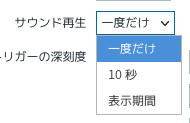 サウンド再生は以下のように一度だけ、10秒、表示期間を選択できます。