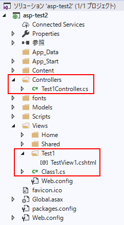 ビュー(TestView1.cshtml)を表示するコントローラです。
