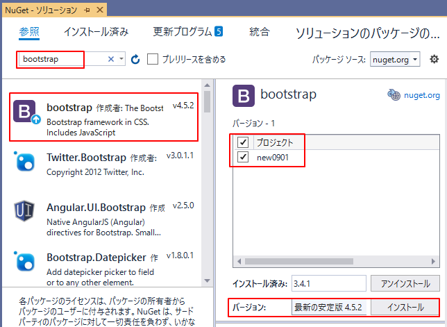 ASP.NETにBootstrapをバージョンアップして追加するサンプルです。