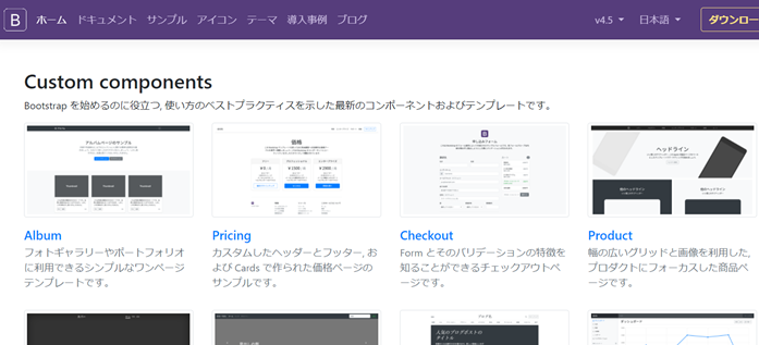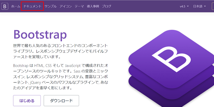 1.公式のBootstrapのページを表示し、「ドキュメント」をクリックします。