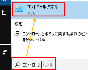 Windowsキー + s を押して検索入力欄を開き、「コントロール」と入力して選択します。