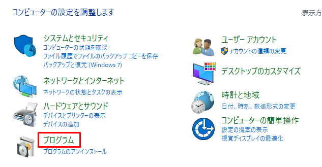 2.「プログラム」をクリックします。