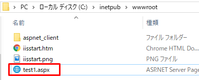 2.ルートフォルダにソース(test1.aspx/test2.aspx)を配置します。