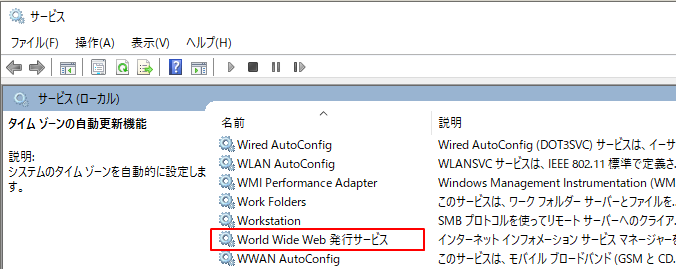 IISのサービスは、「World Wide Web 発行サービス」で起動と停止を制御できます。