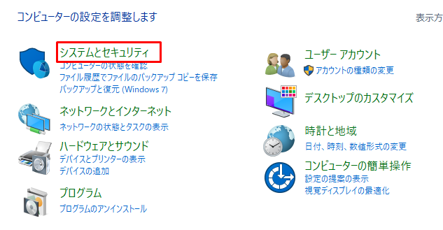 1.コントロールパネルから「システムとセキュリティ」をクリックします。