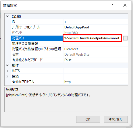 この例ではC:\inetpub\wwwrootでした。