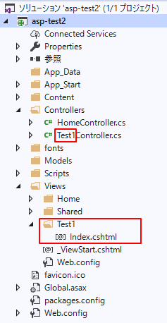 Test1Controller.csのTest1(※)は、Views配下のTest1フォルダと連携しています。