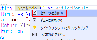 1.12行目のTestModelのあたりで右クリックし「ビューの追加」をクリックします。