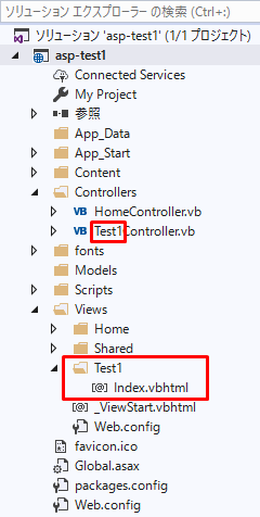 Test1Controller.vbのTest1は、Views配下のTest1フォルダと連携しています。