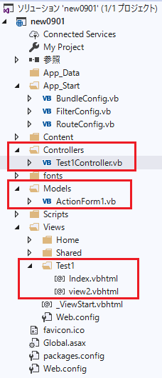 test1フォルダを作成しその中にvbhtmlファイルを配置します。