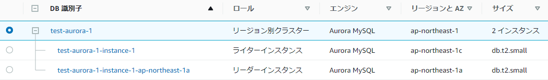 AZは、ライター(Writer)インスタンスが1cでリーダー(reader)インスタンスが1aとなっています。