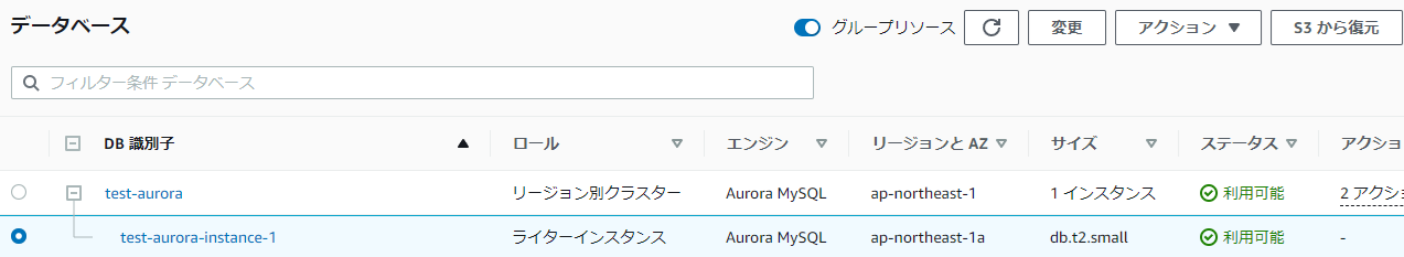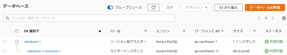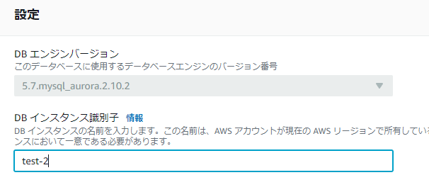 | DB パラメータグループ | default.aurora-mysql5.7 |