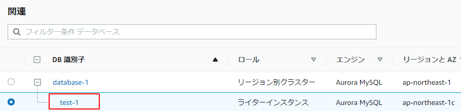 1.削除するAuroraのインスタンスにチェックを入れます。