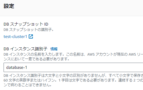 3.DBインスタンス識別子を入力します。一意(他と被らない)である必要があります。