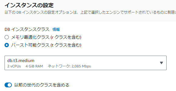 4.インスタンスクラスを選択します。その他の項目を入力・選択後、「DBクラスターを復元」をクリックするとAurora(PostgreSQL)が復元されます。
