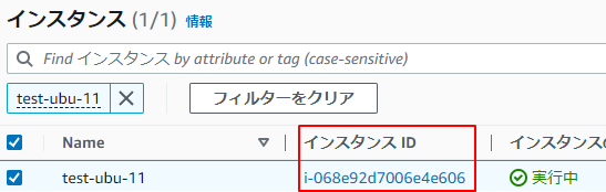 1.EC2のインタンスの一覧からインスタンスIDのリンクをクリックします。