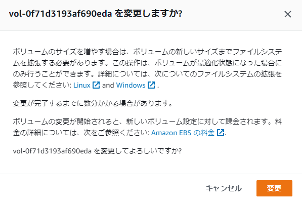 - 以下は、EBS ボリュームの拡張のリンクです。