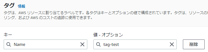 5.タグは、キーに「Name」と入力すると、一覧のName列に値が表示されます。