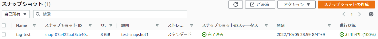 6.スナップショットの一覧に作成したスナップショットが表示されます。