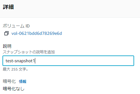 - EC2のEBSのスナップショットを作成します。