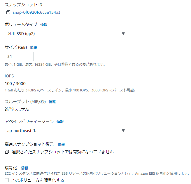 | EBSのスナップショットを作成する | |