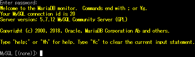 5.成功すると以下のようにMySQLへログインします。