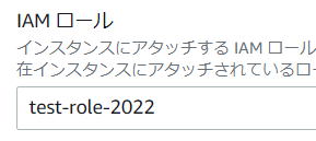 4.IAMロールの選択で作成したロールを選択し「IAMロールの更新」をクリックします。