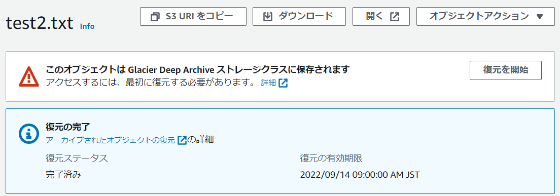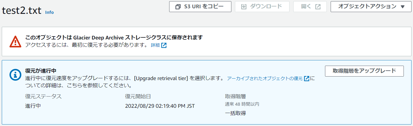 S3 Glacier Deep Archiveからファイルを取得