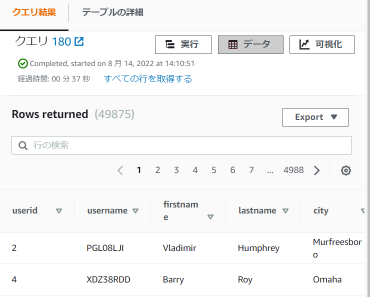 オレンジの「実行する」をクリックするとSQLが実行されます。