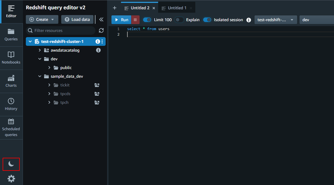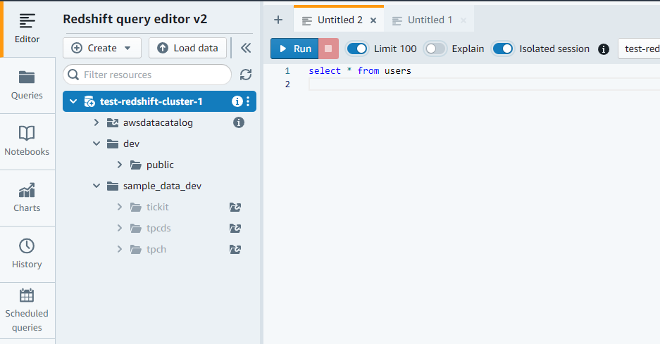 AWSの画面からRedshiftに対してSQLを実行できます。