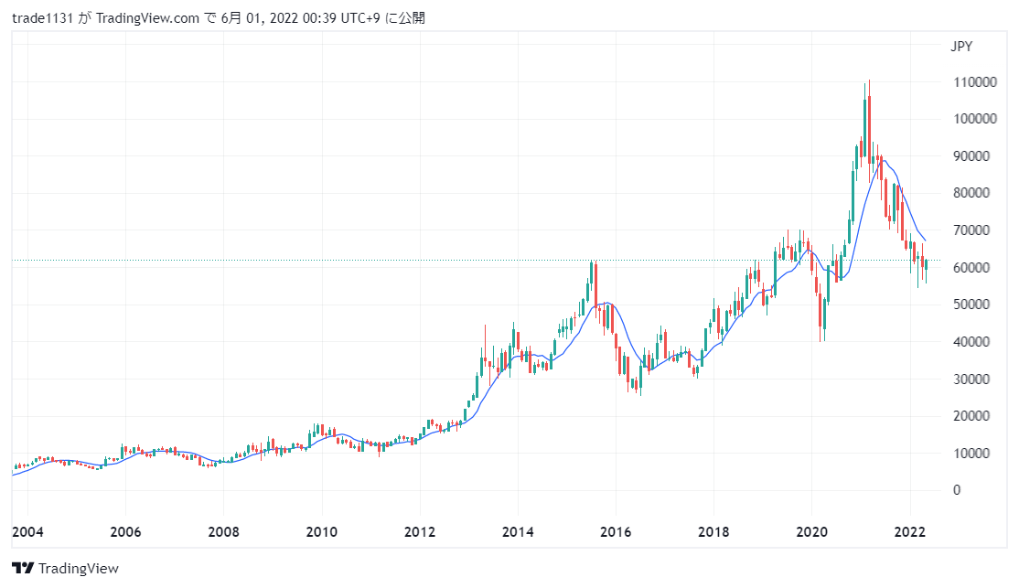 | 2004年から2022年までの株価(ファーストリテイリング) |