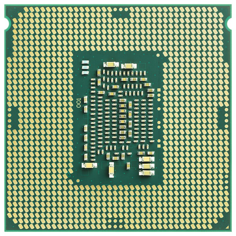 性能向上のために金メッキが施されたCPUの接点/Intel Core i7 6700K CPU bottom view