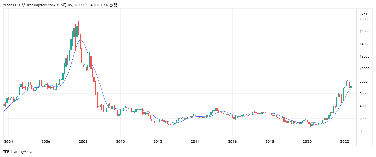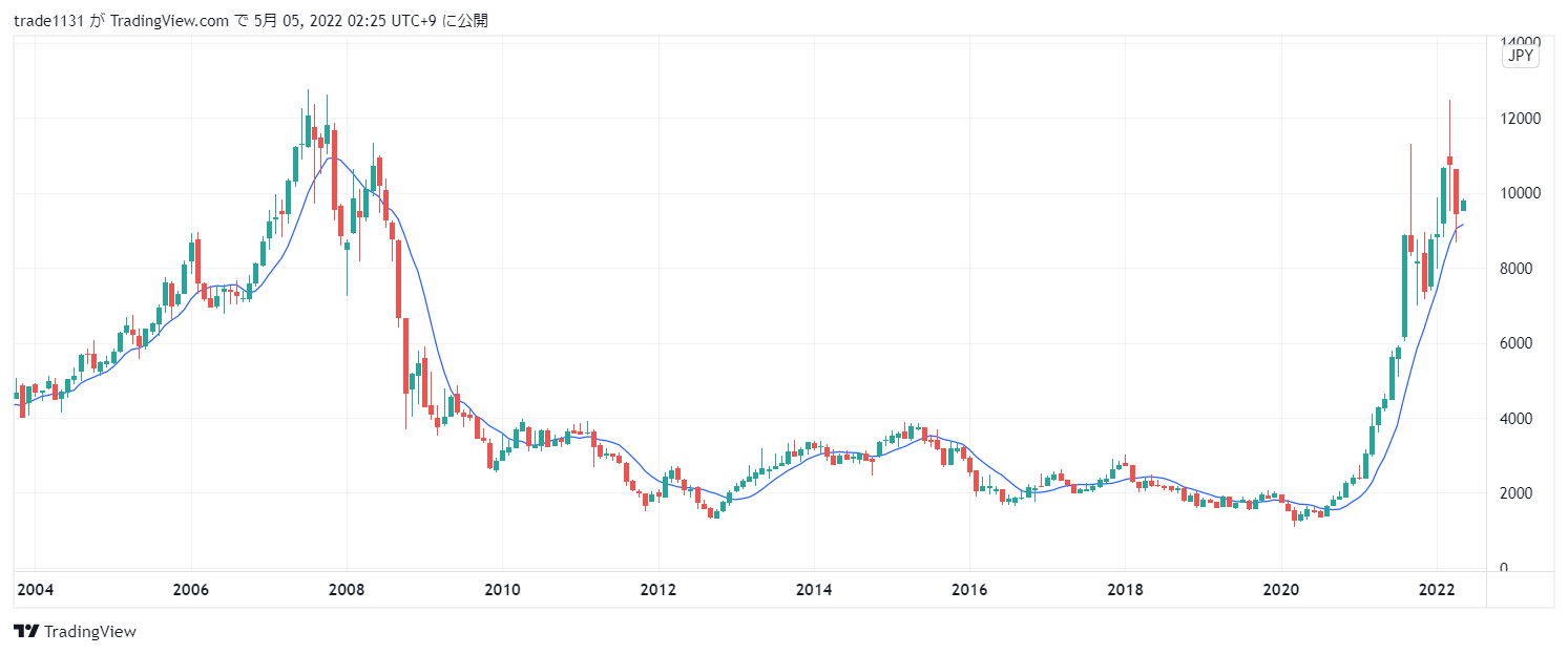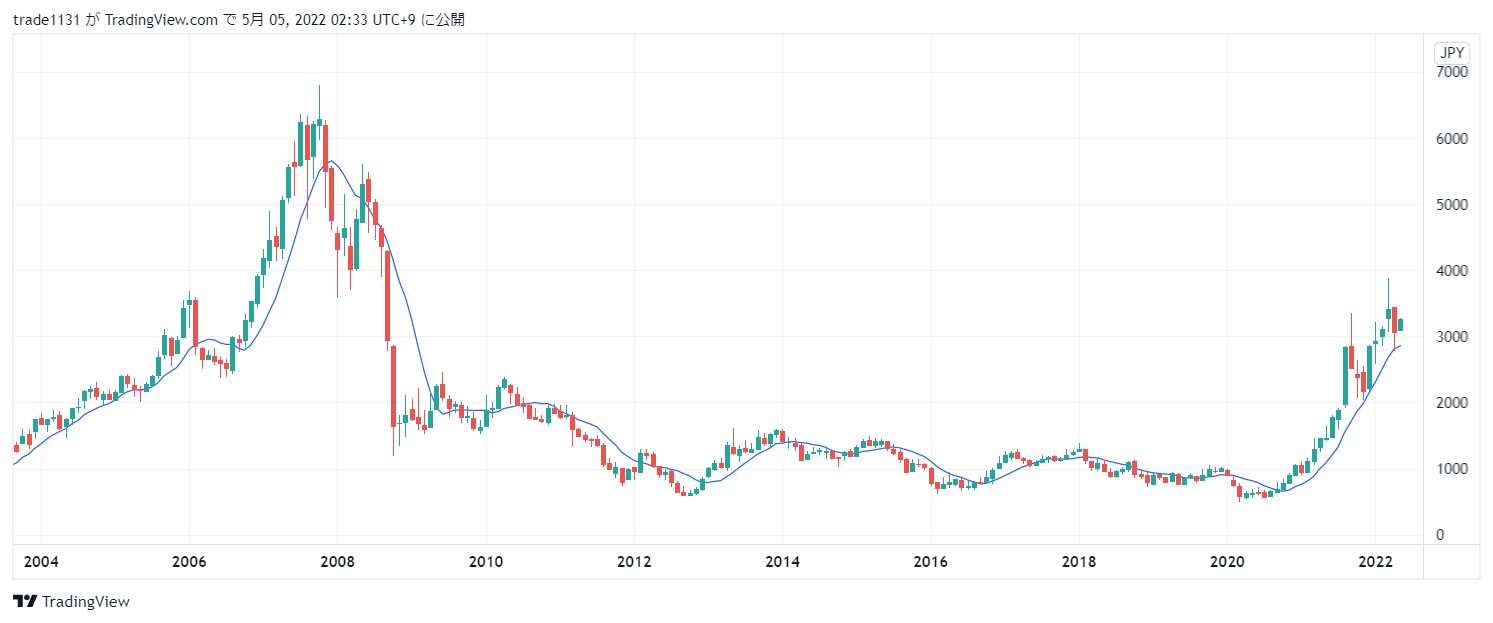 | 2004年から2022年までの株価(商船三井:9104) | |