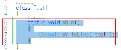 以下は、C#のコードの折りたたみ前と折りたたみ後の図です。