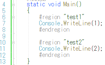 #regionと#endregionでコードの折りたたみと開くことができます。