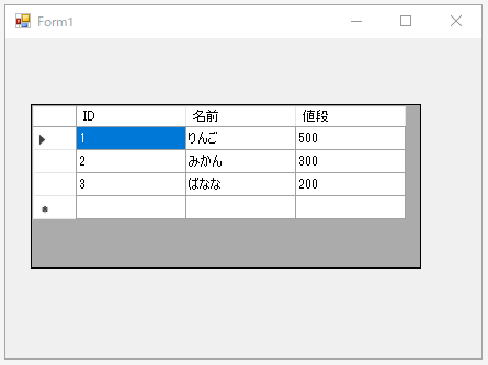 this.dataGridView1.Rows.Add("1", "りんご", 500);