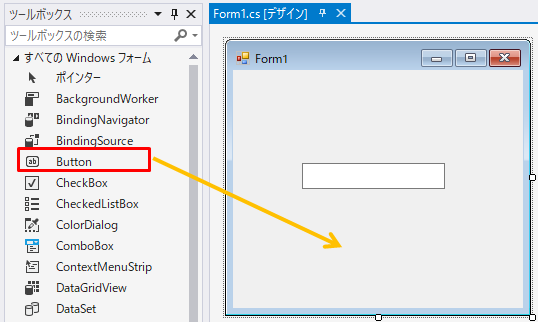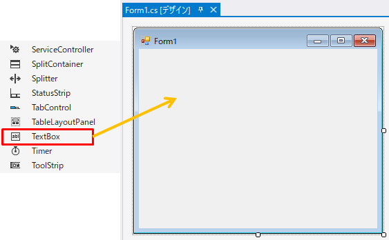 1.「ツールボックス」の「TextBox」をフォームにドラッグアンドドロップします。