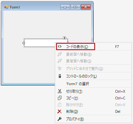 テキストボックスを右クリックして、「コードの表示」をクリックします。
