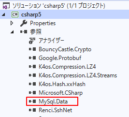 5.MySql.Dataのインストールが完了すると参照配下にMySql.Dataが追加されます。