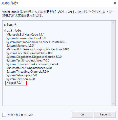 | サンプル | Npgsqlを取得する |