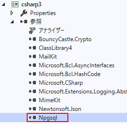 4.Npgsqlのインストールが完了すると参照配下にNpgsqlが追加されます。