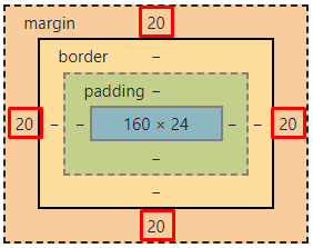 上下左右のmarginに20pxを指定しています。それぞれの値は半角スペースで区切ります。