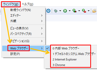 「ウィンドウ」→「Webブラウザ」→選択する。