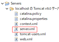 1.Serversフォルダにあるserver.xmlを開きます。