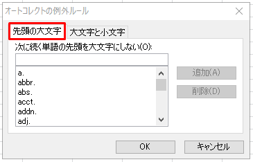 (補足)「例外処理」をクリックするとオートコレクトの例外を設定をすることができます。